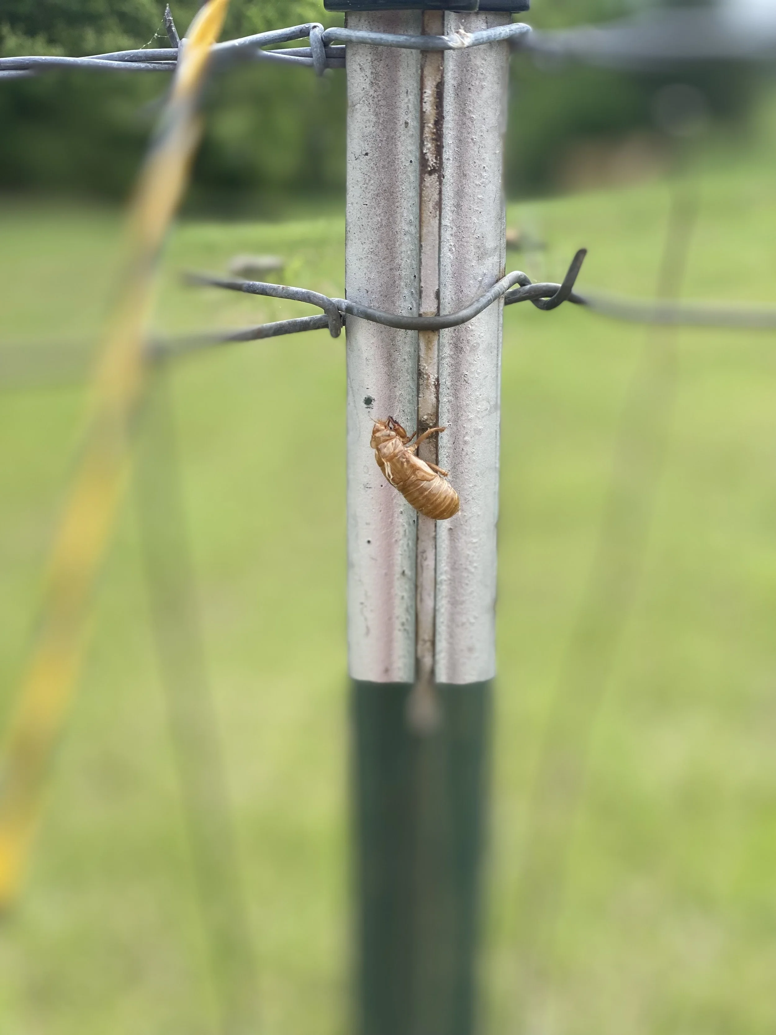Pictured above, a Cicada that found a resting place on one of our new vines after dawning its adult form. Cicadas are beautiful and I personally love the almost deafening noise they are able to produce in large numbers, but we are slightly worried as they have been known to damage young grapes by laying eggs inside the woody stem. There is nothing to be done because there are not really any ways to prevent this without putting insect netting over the whole vineyard, which if not impossible is certainly impractical.